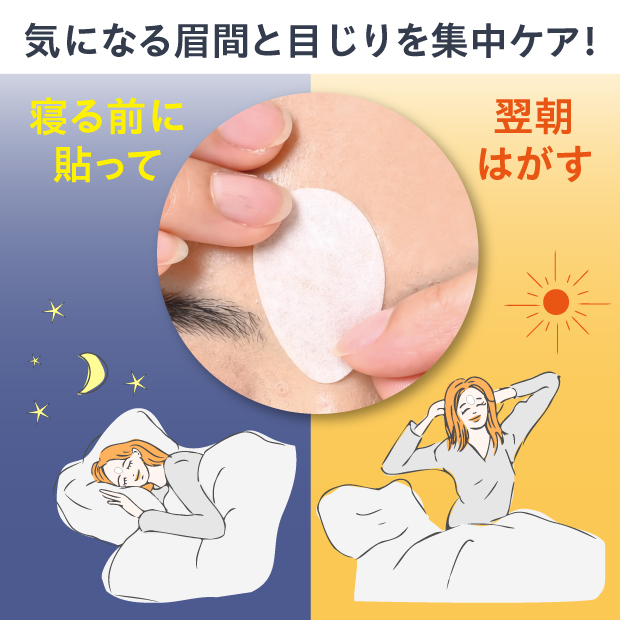 ●老けて見える眉間と目じりのシワに寝る前に貼るだけの簡単ケア!