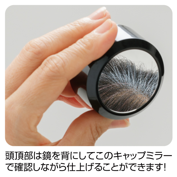 髪に良いとされる成分を贅沢に配合(胡粉、褐藻エキス、ツバキ種子油、加水分解シルク、ヘンナ葉エキス、センブリエキス、他)しているので毎日使っていただけます。パウダータイプだから髪の毛1本1本に密着し、髪のボリュームアップ効果も!キャップにはミラー付きなので頭頂部を確認しながら塗り残しをケア。シャンプーで簡単オフできるので髪の負担もありません!